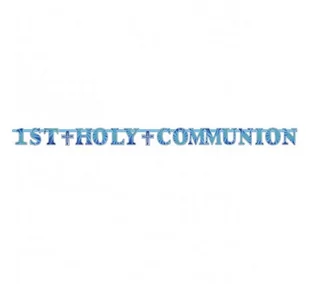 GIRLANDA KOMUNIJNA "1ST HOLY COMMUNION" Długość całkowita: 2,74 m Ilość sztuk w opakowaniu: 1 Kolor: niebieski