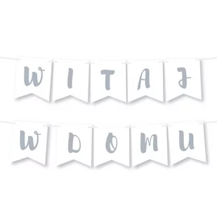 Girlanda WITAJ W DOMU - Srebrna Idealna dekoracja na powitanie w domu maluszka! Powieś ją nad łóżeczkiem dziecka, w oknie lub na ścianie - zarówno mama jak i bobas będą zachwyceni miłym powitaniem ;) W zestawie znajduje się również biała wstążka do samodzielnego nawleczenia. Końcówki wstążek możesz przywiązać np. do karnisza i zawiesić girlandę w oknie wymiary proporczyka: ok. 16,5 cm x 14 cm długość całej girlandy: ok. 1,4 m