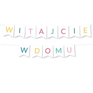 Girlanda WITAJCIE W DOMU - kolorowa Idealna dekoracja na powitanie w domu maluszka! Powieś ją nad łóźeczkiem dziecka, w oknie lub na ścianie - zarówno mama jak i bobas będą zachwyceni miłym powitaniem ;) W zestawie znajduje się również biała wstążka do samodzielnego nawleczenia. Końcówki wstążek możesz przywiązać np. do karnisza i zawiesić girlandę w oknie wymiary proporczyka: ok. 16,5 cm x 14 cm długość całej girlandy: ok. 1,8 m
