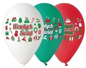 Balony Premium, Wesołych Świąt, 3 Kolory, 12", 5 Sztuk