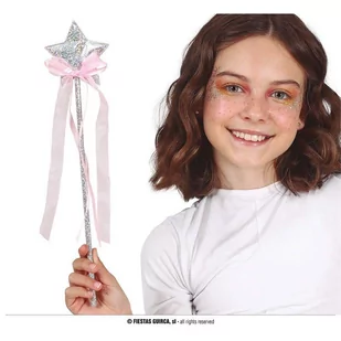 Różdżka wróżki księżniczki ze srebrną gwiazdą 35cm Różdżka dla wróżek i księżniczek z srebrną gwiazdką i różową wstążką to idealny dodatek. Jest urocza i wygodna do trzymania, mając wysokość około 35 cm. Głównym elementem jest efektowna srebrna gwiazdka, która dodaje magii i pięknie błyszczy. Na górze różdżki znajduje się dekoracyjna różowa wstążka z kokardką, podkreślając delikatność. Wykonana z trwałego i lekkiego materiału, zapewnia długotrwałą zabawę.