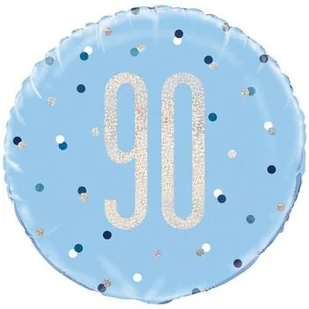 Unique Balon foliowy "90 Urodziny Glitz Grochy" UNIQUE niebieski 18" CIR 83364