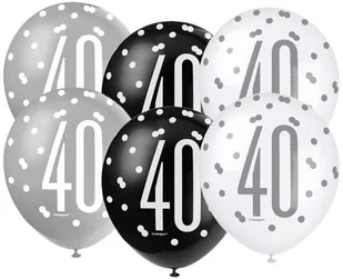 BALONY perłowe w tonacji biało-szaro-czarnej na 40 urodziny z nadrukiem grochów / kropek! Zestaw to MIX 6 balonów, który stanowi świetną dekorację na czterdzieste urodziny!