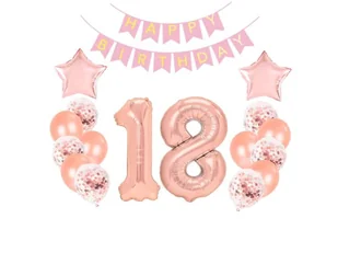 Zestaw balonów, Na 18 (osiemnaste) urodziny, różowo złoty, 16 szt. plus baner [balon z helem]