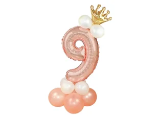 Zestaw balonów z cyfrą dziewięć różowe złoto - 15 szt.