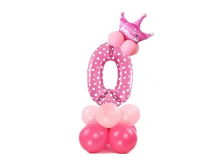 lateksowe jasnoróżowe 5 cali (6 szt.), - lateksowe ciemnoróżowe 10 cali (4 szt.), - foliowa cyfra 0 70 cm (1 szt.), - foliowa korona 30 cm (1 szt.), - 20 szt.