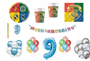 Zestaw Harry Potter Urodziny Balony Zestaw składa się z: - Baner urodzinowy Moje Urodziny - Kubki Harry Potter 8 sztuk - Talerzyki Harry Potter 8 sztuk - Ser...
