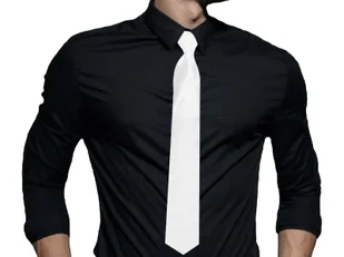 Biały krawat błyszczący jako dodatek do strojów dla dorosłych np. gangstera. Krawat mocowany na gumce.