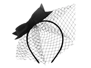 Opaska z czarną kokardką i woalką, idealna np. na uroczyste okazje, na bale czy do teatru.. Opakowanie: 1 szt.