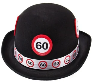 Kapelusz sześćdziesiątka w kolorze czarnym, idealny na "60" sześćdziesiąte urodziny. Kapelusz z serii znak zakazu. Opakowanie: 1 szt.