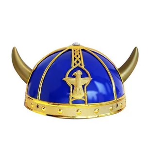 Hełm wikinga wykonany z tworzywa sztucznego. Rogi do samodzielnego montażu. Produkt w kolorze niebiesko-złotym. Wysokość produktu ok. 12 cm. Obwód ok. 57 cm.