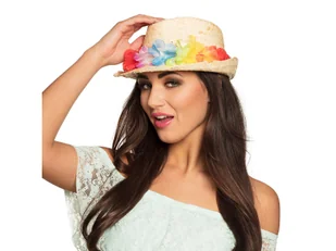 Kapelusz hawajski słomkowy z kwiatami - 1 szt.