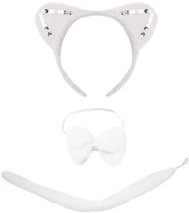 Zestaw opaska, mucha i ogon kotka w kolorze białym. Opakowanie: 1 kpl.