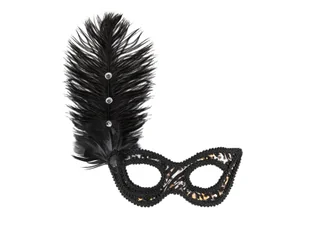 Maska wenecka Lampart ozdobiona piórami. Świetnie nadaje się jako dodatek do stroju na karnawał czy imprezę noworoczną. Sprawdzi się także jako dekoracja i ozdoba sali czy pokoju. Szerokość: ok. 18 cm. Wysokość: ok. 24 cm (z piórami). Opakowanie: