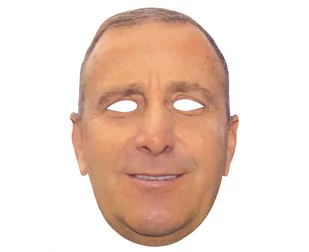 maska z wizerunkiem Grzegorza Schetyny mocowana na gumce posiada otwory na oczy materiał: papier rozmiar: uniwersalny wymiary: 21 x 31 cm