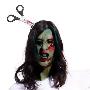 OPASKA NOŻYCZKI W GŁOWIEHalloween zbliża się wielkimi krokami. Czas przygotować mieszkanie na najstraszniejszą noc w roku. A może chcesz przestraszyć znajomych? Mamy coś idealnego!Przedstawiamy opaskę z zakrwawionymi nożyczkami, która po założeniu wygląda jakby wbijały się w głowę. Siekiera została zamocowana na czarnej opasce dopasowującej się do głowy. Długość nożyczek: