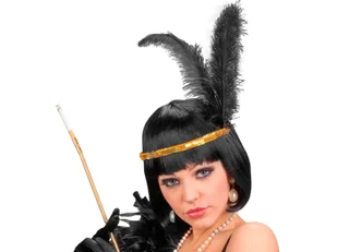 Opaska z dwoma piórami i złotymi cekinami Charlestone. Idealna na Sylwester jak i na karnawał. Długość pióra: 25 cm. Opakowanie: 1 szt.