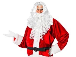 Biała peruka z brodą Mikołaja, idealna do stroju na święta Bożego Narodzenia.