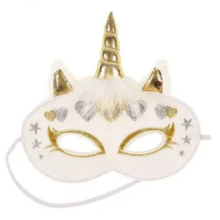 Miękka biała maska Jednorożca holenderskiej marki Souza! Wykonana z przyjemnego futerka, ze złotymi i srebrnymi aplikacjami, uszkami, białą grzywką, złotym rogiem i haftowaniami wokół oczu. Cechy: starannie wykonana z dbałością o detalena nieuciskającej gumceidealny dodatek do kostiumu na tematyczne urodzinki, bal przebierańców czy Sylwestrasprawdzi się także jako prezentDane techniczne: materiał: poliesterdesign: Holandiawymiary opakowania: 16 x 21 x 2 cmO marce: