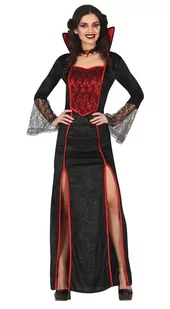 Strój dla dorosłych Wampirzyca Dracula sukienka L Stwór dla dorosłych - Elegancki strój Wampirzycy, składający się z długiej czarnej sukienki z czerwonymi detalami. Wykonany z wysokiej jakości poliestru, który jest elastyczny i wygodny w noszeniu. Nie wymaga dodatkowych elementów, aby osiągnąć efekt. Może być noszony na różne okazje. Przebierając się w ten strój można wcielić się w postać intrygującej wampirzycy.