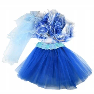 Strój Karnawałowy Dla Dziewczynki Przebranie Niebieska Peruka Spódniczka