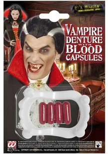 Charakteryzacja WAMPIRA na Halloween $63 A może pokaz zakrwawionego kolegi na szkolnej przerwie $64 Do dyspozycji masz 4 kapsułki z magicznym proszkiem, który w kontakcie ze śliną zamiania się. . . w krew. Do tego w zestawie sztuczna szczęka wampira - kompozycja idealna do wykorzystania jako element przebrania.