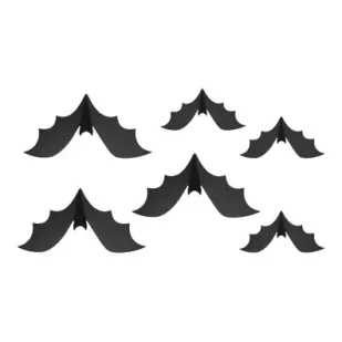 Dekoracja papierowa Nietoperze w kolorze czarnym, zestaw zawiera 6 sztuk, wymiary ok. 19 x 8.7 - 29 x 13 cm.(1 op. / 6 szt.)
