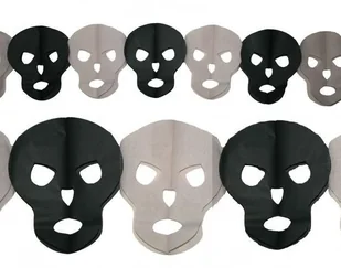 dekoracja wisząca, girlanda czaszki wykonana z papieru w kolorze czarnym i białym długość: 3 m wysokość: 16 cm