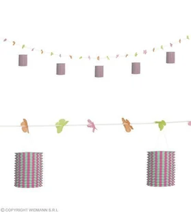 Girlanda z papierowymi różowo-zielonymi lampionami i kolorowymi kwiatami. Długość : ok. 3 m.;Girlanda z papierowymi różowo-zielonymi lampionami i kolorowymi ...