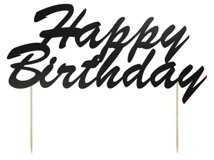 Napis Happy Birthday na pikach w kolorze czarnym perłowym, idealna dekoracja tortu na urodziny. Dekoracja DIY.