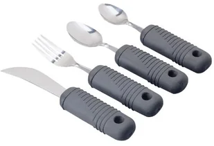 Sammons Preston Sure Grip, giętki zestaw sztućców ze stali nierdzewnej, widelec, nóż, łyżka, gruby uchwyt z dobrą przyczepnością, do jedzenia, artretyzmu, słaby chwyt i niepełnosprawności