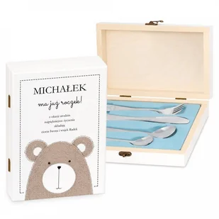 Zestaw Grawerowanych Sztućców w Drewnianym Etui z Nadrukiem to doskonały upominek dla dziecka.