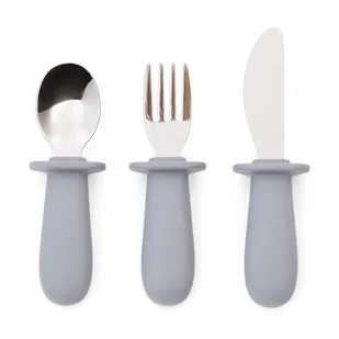 Sztućce dla dzieci Lili marki Kave Home to praktyczny zestaw, który sprawi, że posiłki dla najmłodszych staną się przyjemnością. Zaprojektowane z myślą o małych smakoszach, są nie tylko funkcjonalne, ale i zabawne, ułatwiając rodzicom karmienie, a dzieciom umilając jedzenie. W skład zestawu wchodzą łyżeczka, widelec i nóż. Każdy z trzech elementów posiada solidne, ergonomiczne uchwyty wykonane z silikonu, idealnie dopasowane do małych rączek dziecka. Metalowe części są trwałe, a ostrze noża jest tępe i bezpieczne dla najmłodszych.