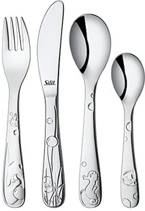 Silit Sztućce dla dzieci zestaw 4-częściowy pezzy Crominox stal nierdzewna polerowana odpowiednia od 3 lat z motywami, zdominowanym przez 21.4521.3208
