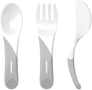 Twistshake Sztućce do nauki 6+m przeznaczona do nauki jedzenia za pomocą łyżki, widelca i noża. Nóż do bezpiecznego krojenia, łyżka przeznaczona dla malucha i widelec z drobnymi końcówkami. Miękka powierzchnia, antypoślizgowe wykończenie i ergonomiczny kształt zapewniają pewny chwyt dziecka i motywują do nauki.