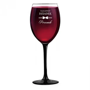 Kieliszek grawerowany do wina z czarną nóżką onyx dla dziadka