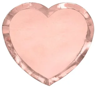 "Błyszczące papierowe talerzyki w kształcie serca w kolorze różowego złota, rozmiar około 21 x 19 cm(1 karton / 25 op.)(1 op. / 6 szt.