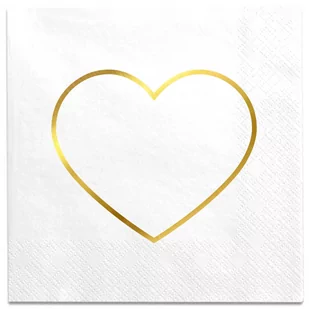SERWETKI SERCE 12 szt Białe Najmodniejszy dodatek w tym sezonie. Serwetki na różne okazjie z motywem delikatnego złotego serduszka to fantastyczna dekoracja stołu na uroczystości. Nie tylko praktyczne i eleganckie, ale też pomysłowe. Dzięki nim goście poczują się docenieni i wyróżnien. Specyfikacja: