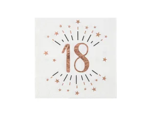 Serwetki 3-warstwowe z nadrukiem 18 - osiemnastka w kolorze różowego złota z zestawu Sparkling. Idealne na osiemnaste urodziny.