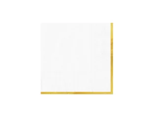 Papierowe serwetki w kolorze białym ze złotym, ozdobnym brzegiem.