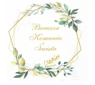 Serwetki papierowe Komunia Święta Zestaw dwustronnych serwetek w odcieniu białego ze złotym napisem Pierwsza Komunia Święta i złotymi oraz roślinnymi elementami zdobienia. Trójwarstwowa chusteczka pochłania dużo wody, dzięki czemu serwetki są chłonne. Dodatkowe tłoczenie na bokach nadaje im grubości. Serwetki stanowią praktyczną ozdobę stołu, dzięki czemu świetnie będą się prezentować i doskonale spełniać swoją funkcje. Idealne na przyjęcie komunijne.