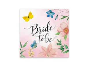 Serwetki papierowe w kolorze różowym w motywie kwiatowym z czarnym napisem Bride To Be. Wymiary: 33 cm x 33 cm (po rozłożeniu). Opakowanie: 10 szt.