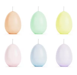 Świece w kształcie jajek w pastelowych kolorach. Taka świeczka będzie stanowić piękną ozdobę stołu podczas Wielkanocnego posiłku. Wymiary: średnica: 7 cm Opakowanie 6 szt. mix kolorów.