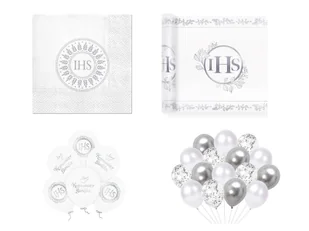 Zestaw dekoracji na stół na I Komunię Świętą.