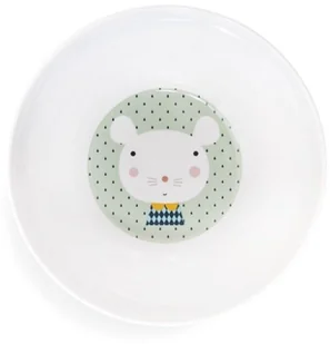 Przepiękna miseczka głęboka wykonana z bezpiecznej dla Dzieci melaminy wzór Myszka i Kropki utrzymany w pastelowej tonacji złamanych kolorów mięty. Idealny do podania chłodników, zup lub owocowo-warzywnych przekąsek Design Rebecca Jones- meksykańska aktorka filmowa. Rozmiar w cm: 16 cm x 5,5 cm Przepiękna miseczka głęboka wykonana z bezpiecznej dla Dzieci melaminy wzór Myszka i Kropki utrzymany w pastelowej tonacji złamanych kolorów mięty. Projekt ilustracji: