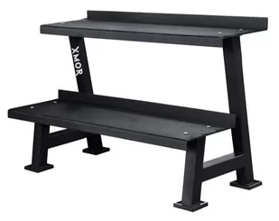 Solidny stojak wolnostojący marki XMOR FITNESS na odważniki kettlebells. Stalowa konstrukcja malowana proszkowo. Stojak posiada 2 wzmocnione półki wyłożone gumą.
