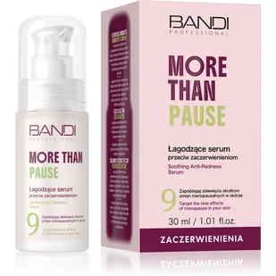 Bandi More Than Pause Łagodzące Serum Przeciw Zaczerwienieniom 30mlBandi More Than Pause Łagodzące Serum Przeciw Zaczerwienieniom 30ml to lekka, niekomedogenna formuła stworzona dla skóry wrażliwej, reaktywnej oraz ze skłonnością do trądziku pospolitego i różowatego. Pomaga odzyskać komfort, równowagę i zdrowy wygląd cery w okresie zmian hormonalnych. Serum redukuje zaczerwienienia, łagodzi podrażnienia i zmniejsza widoczność rozszerzonych naczynek. Wspiera nawilżenie i elastyczność skóry, jednocześnie regulując produkcję sebum, co minimalizuje błyszczenie w strefie T oraz ogranicza pojawianie się niedoskonałości. Regularnie stosowane przynosi skórze ukojenie, redukuje zmiany trądzikowe i pomaga utrzymać jednolity, spokojny koloryt.