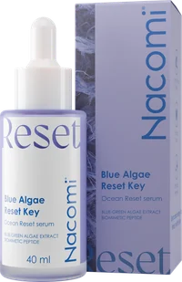 Nacomi Blue Algae Reset Key Serum Regenerujące 40mlNacomi Blue Algae Reset Key Serum Regenerujące to intensywna kuracja dla skóry pozbawionej witalności, zmęczonej stresem, brakiem snu lub pierwszymi oznakami starzenia. Przywraca energię, wygładza i wzmacnia cerę, nadając jej promienny wygląd. Ekstrakt z alg wakame ujędrnia, zwiększa elastyczność i wspiera regenerację skóry. Niebiesko-zielone algi działają jak roślinny odpowiednik retinolu - wygładzają linie, wyrównują strukturę naskórka i subtelnie rozjaśniają cerę. Wyciąg z zielonego kawioru przyspiesza odnowę komórek, jednocześnie wzmacniając włókna kolagenowe.