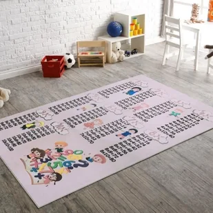 Dywan dziecięcy - MANI TEXTILE - Tabliczka mnożenia - Można prać i antypoślizgowy - Różowy - 100x160cm