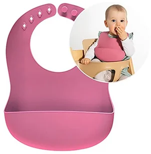 reer Eat'n Tidy silikonowy śliniaczek z miseczką na śliniak, nadaje się do mycia w zmywarce, rosnący wraz z dzieckiem, różowy
